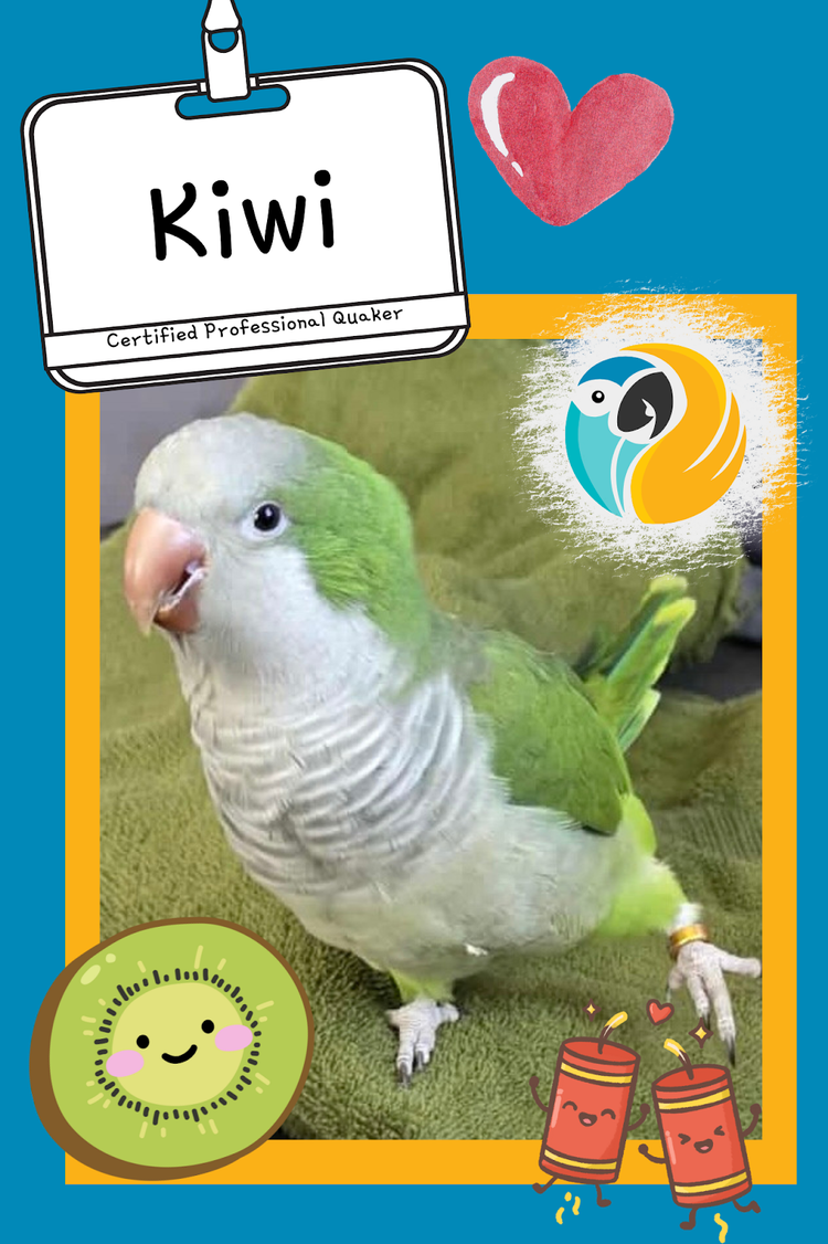 If you are looking for a challenge, or a “project bird”, we have the perfect parrot for you: Kiwi! You might think she looks as sweet as a little kiwi (and we agree!), but she also has a lot of qualities in common with a lit firecracker.